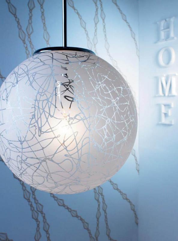 Så härlig lampa med kromat upphäng och kupa med frostat mönster i glas. Ömtålig? Ja lite! vacker? Oh yes.