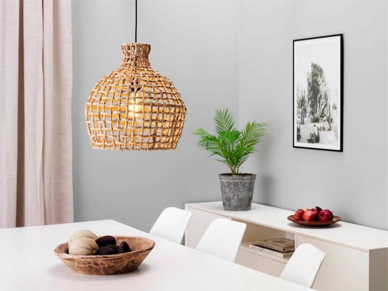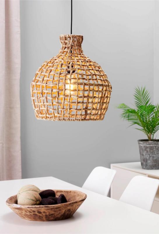 Sååå läcker takskärm gjord av flätad vattenhyacint. Komplettera med en cool dekoration LED-ljuskälla för att sätta din egna personliga touch. Eftersom skärmen är gjord i naturmaterial går den även att ha ute men trivs då ändå bäst under tak :-) Upphäng ingår ej.