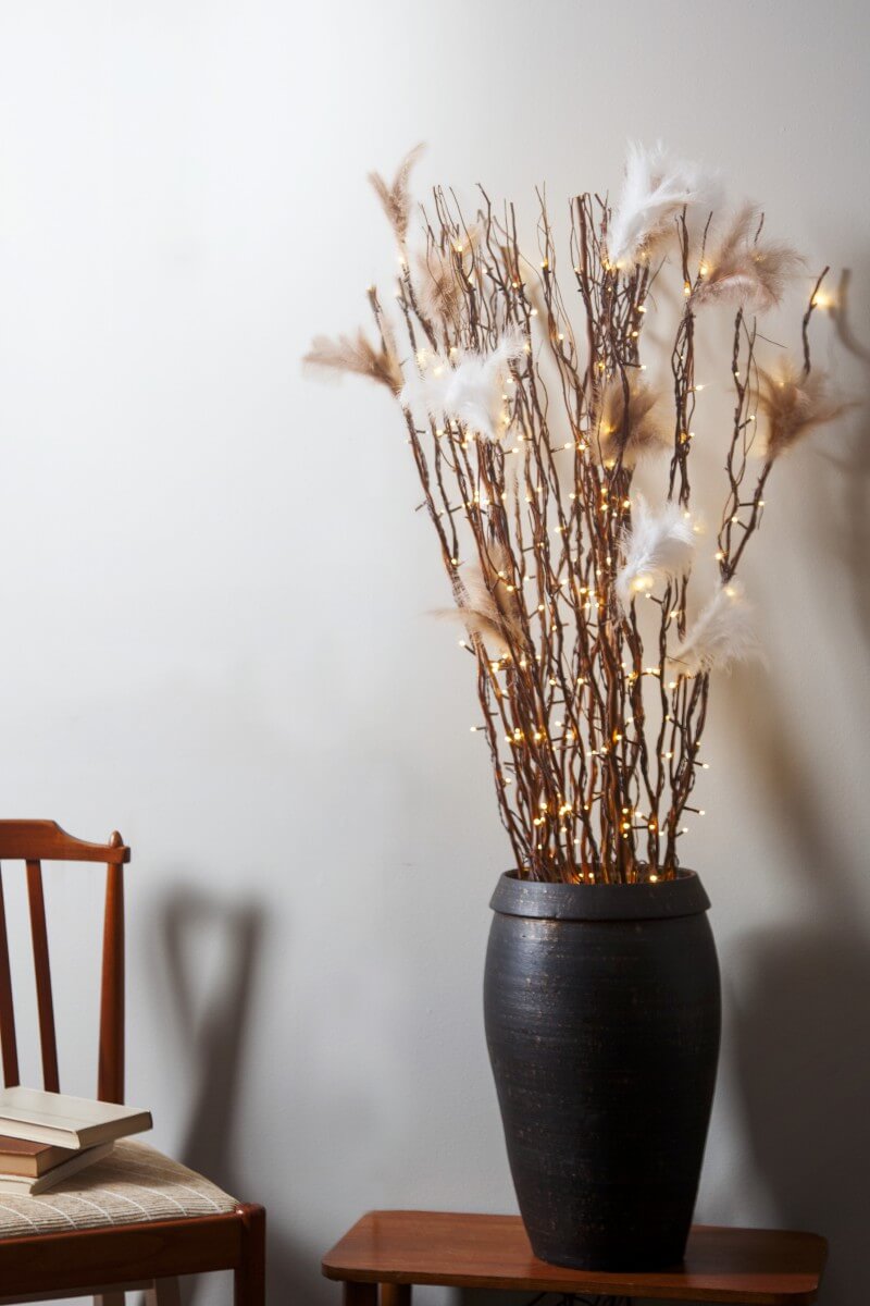 Brun dekorationskvist för inomhusbruk från Star Trading. En fantastisk dekoration som ger rummet en fin inredning med ljus. Placera kvisten i en vas som en vacker golvdekoration. Kvisten har 60 små LED-ljuskällor.