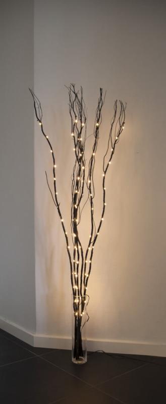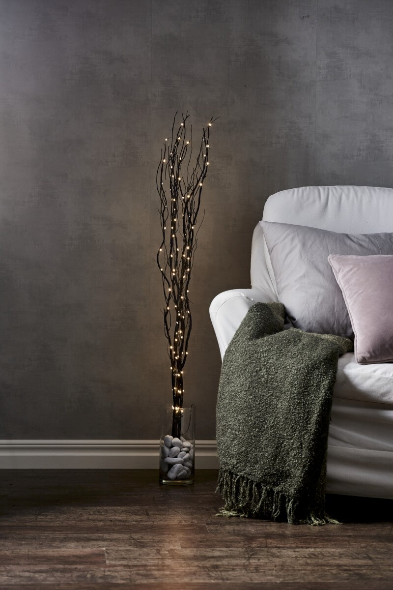 Svart dekorationskvist med den läckra dew drop slingan invävd i grenarna. En fantastisk inomhusdekoration som ger hemmet en fin inredning med ljus. Placera kvisten i en vas som en vacker golvdekoration. Kvisten har 90 LED-ljuskällor.