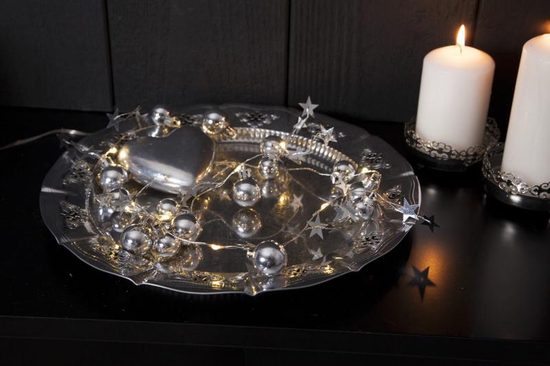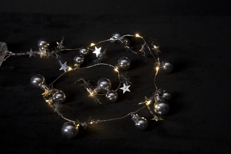 Så söt liten silvrig batteridriven slinga, 10 ljuspunkter med små små små söta julgranskulor och stjärnor på.