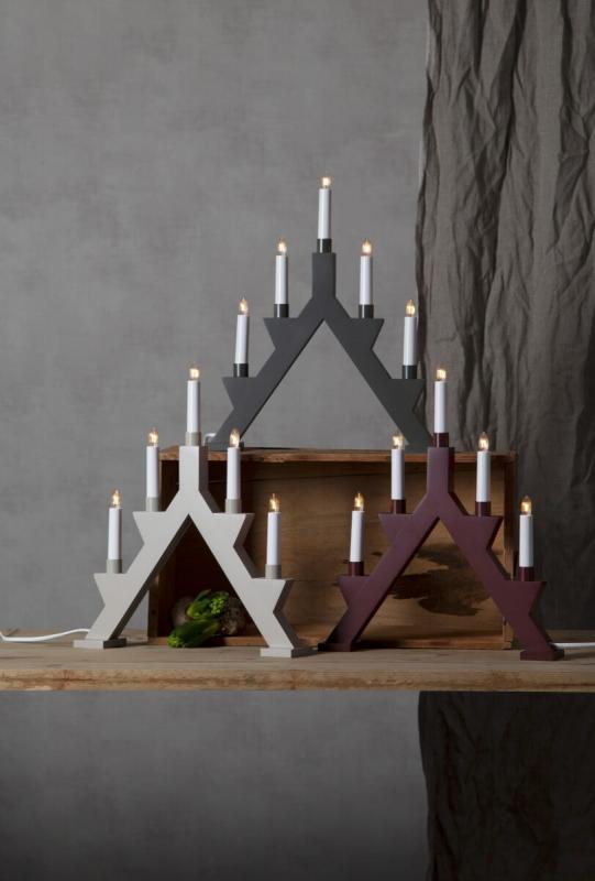 Ljusstake i traditionell form och stil med ett modernt uttryck i Mörk Grå färg. Matchande hylsor som dekoration på ljuspiporna. Ger ett läckert intryck och en härlig julstämning. Här med 5 stycken ljus.