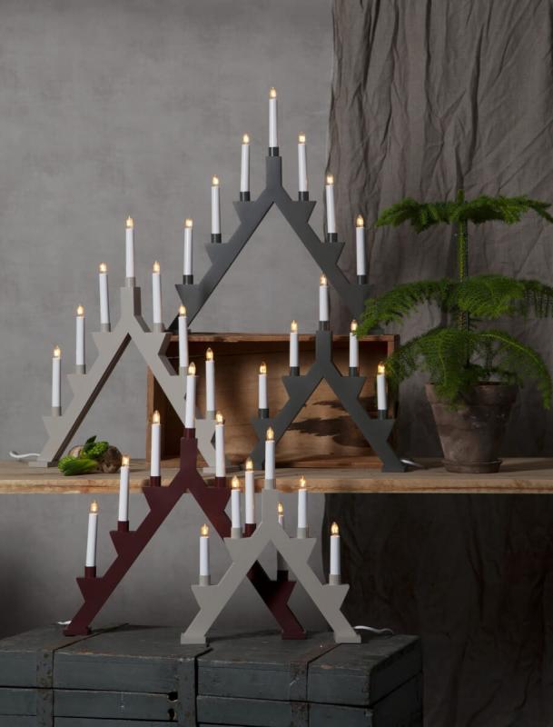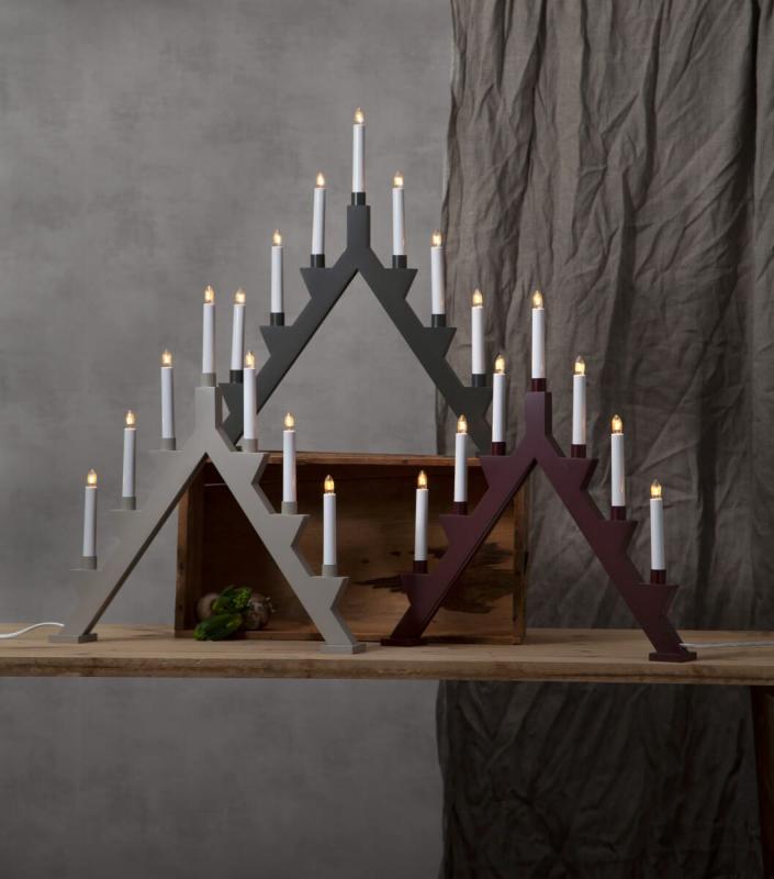 Ljusstake i traditionell form och stil med ett modernt uttryck i Mörk Grå färg. Matchande hylsor som dekoration på ljuspiporna. Ger ett läckert intryck och en härlig julstämning. Här med 7 stycken ljus.